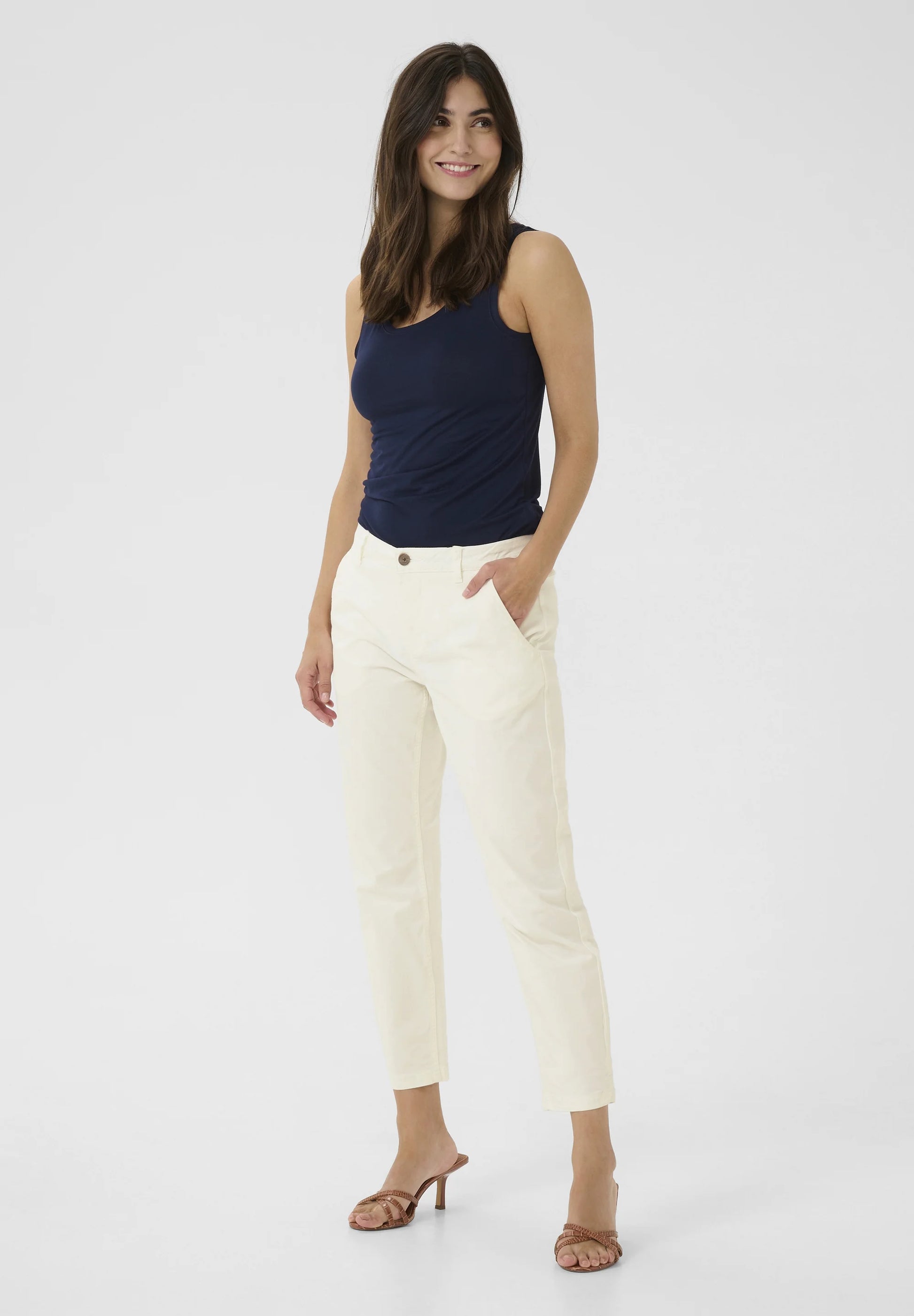 Brita Chino housut ovat täydellinen valinta, kun haluat yhdistää mukavuuden ja tyylin. Ne antavat tyyliä ilmeelle, mutta silti tunnet olosi rennoksi koko päivän. Cropped-pituus tuo housuihin kivaa keveyttä ja ilmavuutta, joten ne sopivat mainiosti niin kevätpäiviin kuin kesän lämpimiin hetkiin.