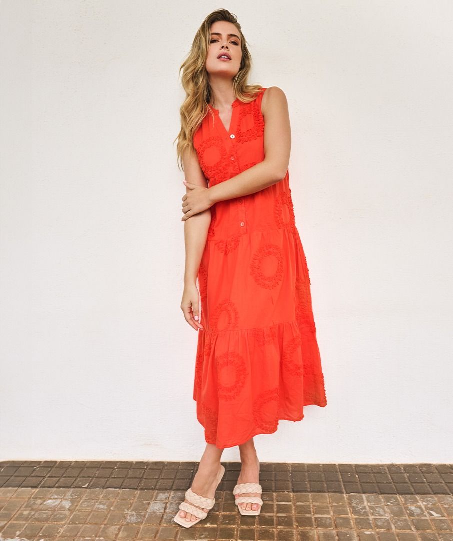 Esqualon näyttävä brodeerattu mekko jossa napitus lantiolle asti.