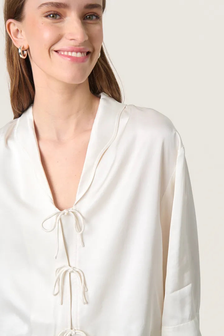 Ihana samettisen pehmeä paita, joka sopii täydellisesti arkeen, sekä juhlaan. Paidassa on vajaamittaiset hihat, sekä upeat narut edessä.