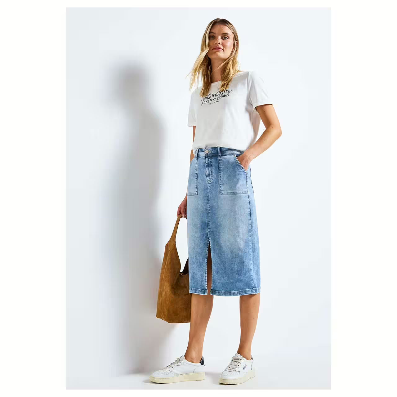 Tyylikäs farkkuhame kesään ja syksyyn. Hameesta löytyy taskut, sekä halkio edestä.