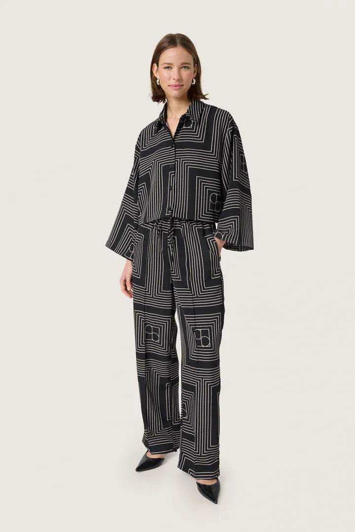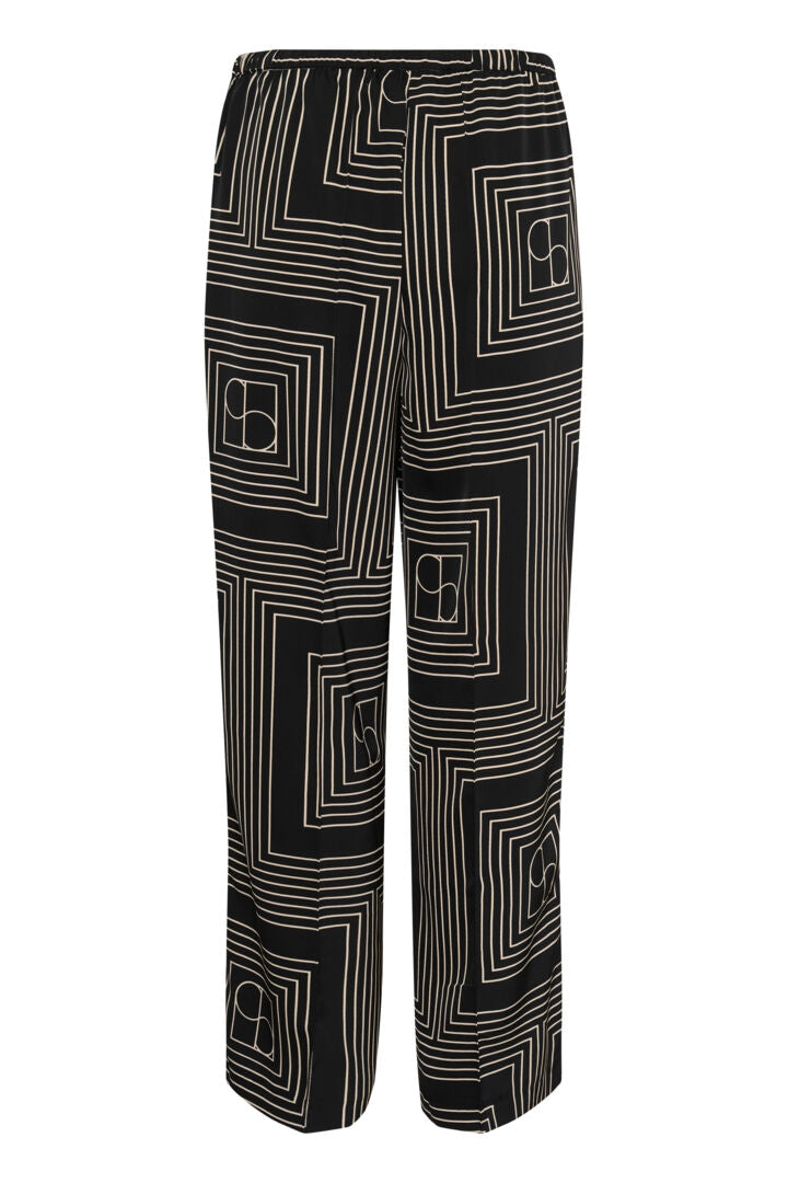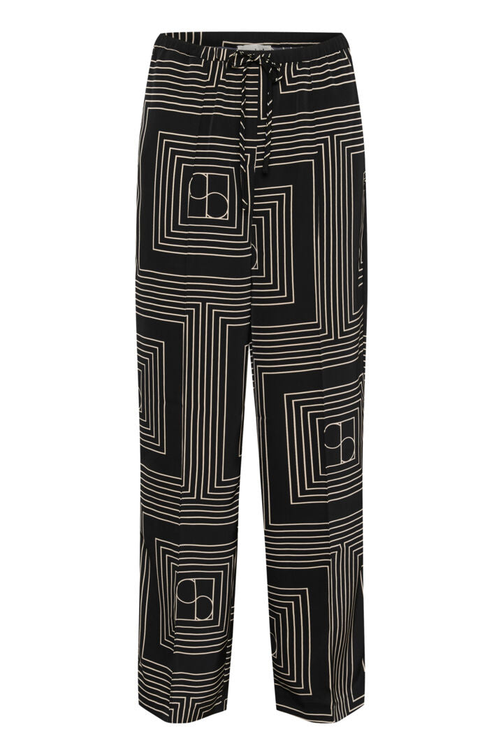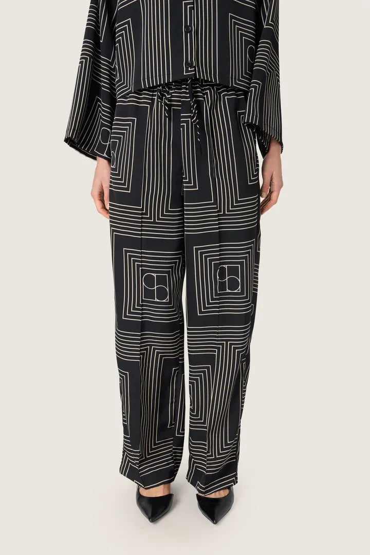 Mukavan rennot housut tyylikkäällä geometrisellä kuviolla. Vyötäröllä kiristysnauha.