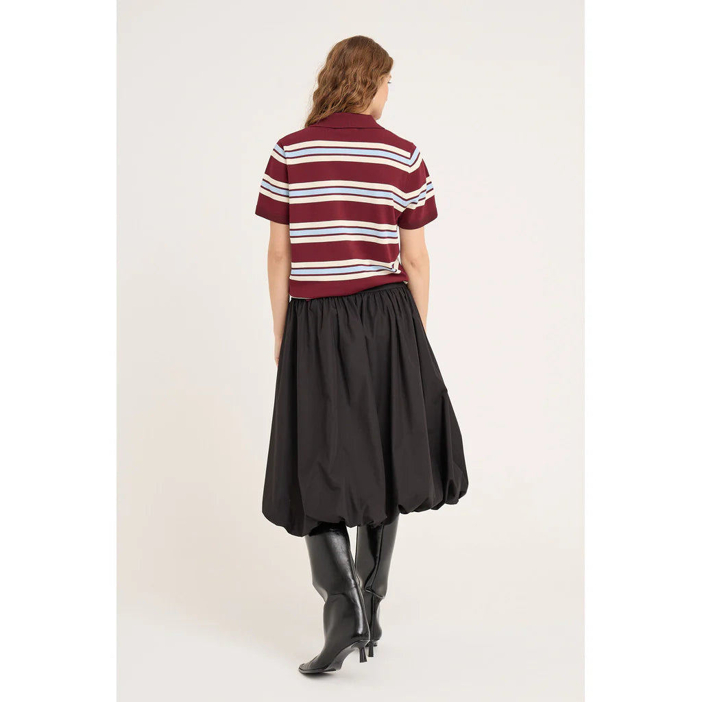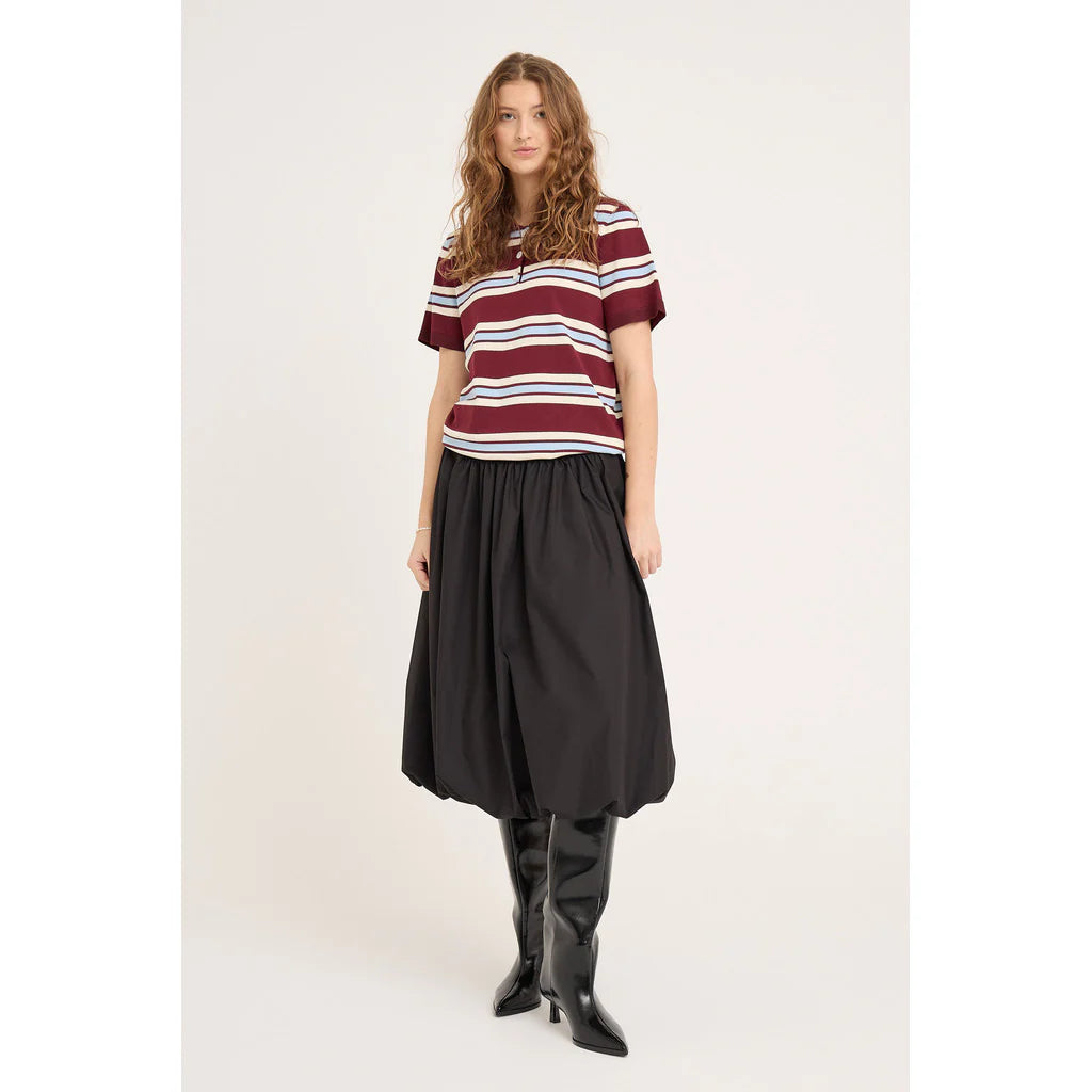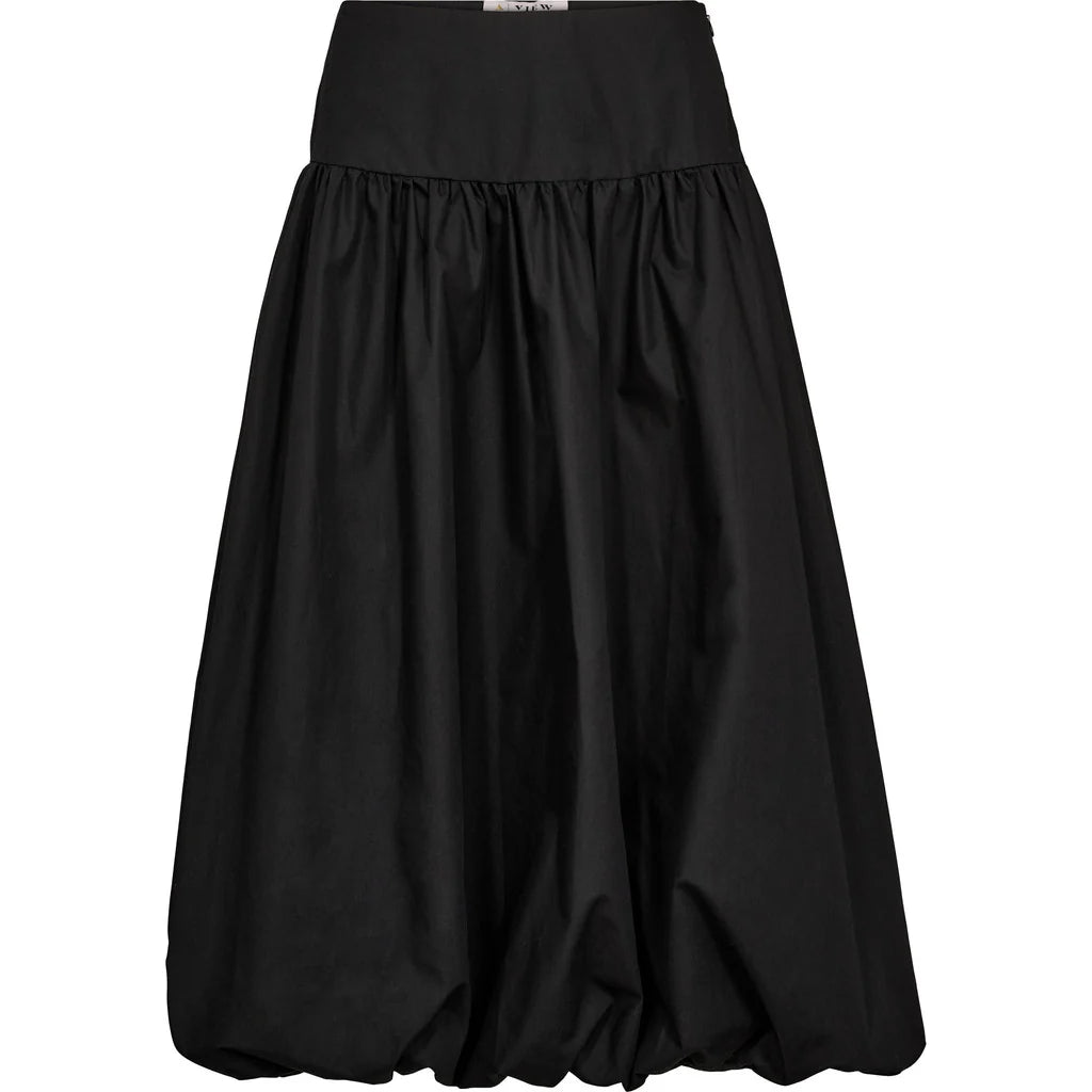 Tyylikäs ja mukava hame, joka sopii moneen tilaisuuteen. Hame on midi-pituinen ja pallon muotoinen.