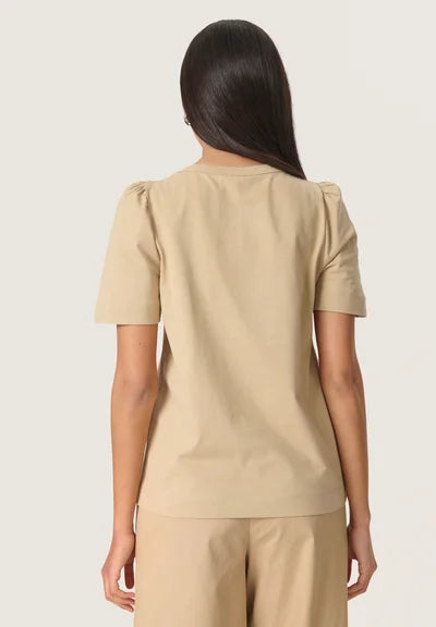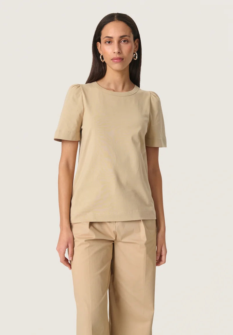 Tässä puuvilla T-paidassa on kauniit hieman puhvihihat.