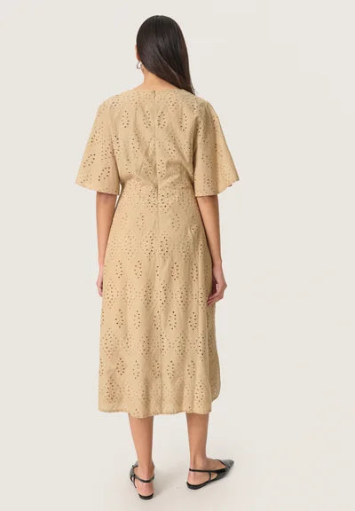 Tässä kaunis brodeerattu vapaa-ajan mekko. Mekossa on V-kaulus, takana vetoketju ja mekosta löytyy myös alushame.