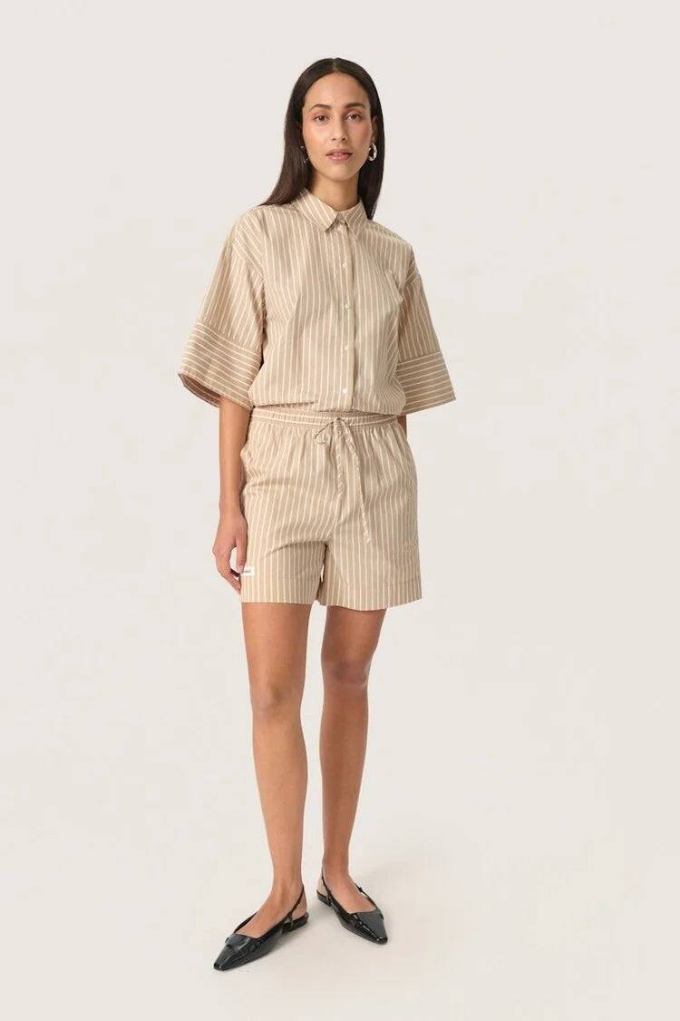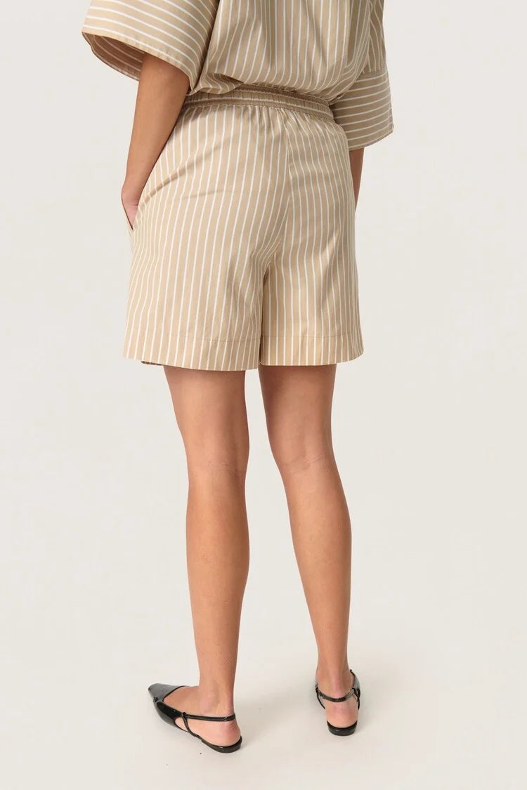 Nämä ihanat raidalliset, puuvillaiset shortsit ovat trendikkään ihmisen valinta kesäasuksi. Shortsiin on saatavilla samaa sarjaa oleva paita joka täydentää rennon kesä "lookin"