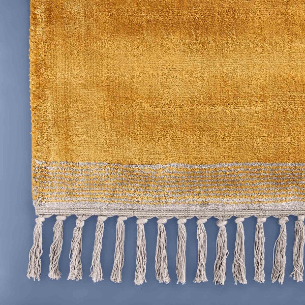 Käsinkudottu viskoosimatto on näyttävä sisustuselementti.
