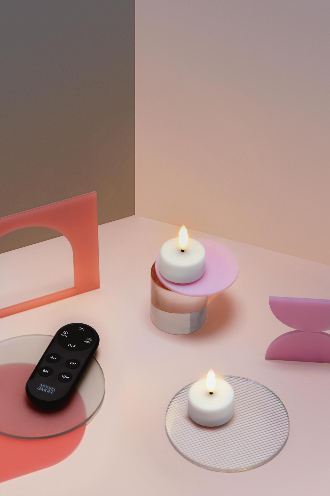 Säädä tunnelmaa helposti kaukosäätimellä. Kytke kynttilät päälle tai pois yhdellä painalluksella, aseta ajastin tai säädä kirkkautta mielesi mukaan.