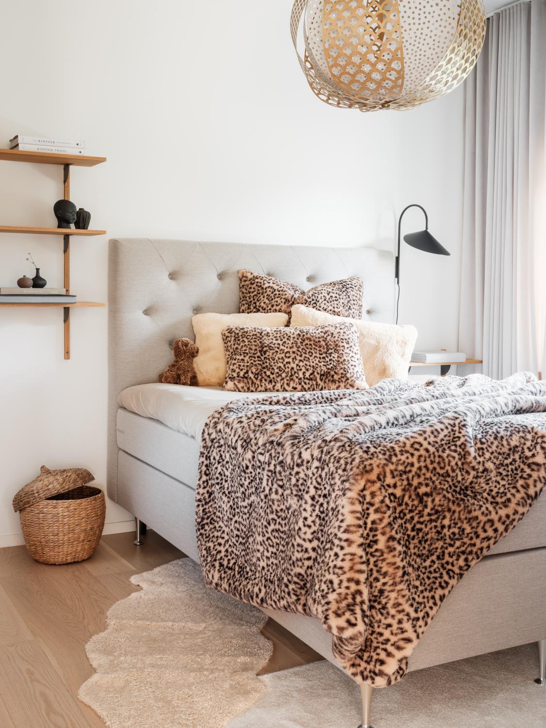 Tämä trendikäs leo-tyyny tuo tyyliä sisustukseen ja hemmottelee silkkisen pehmeällä karvalla.