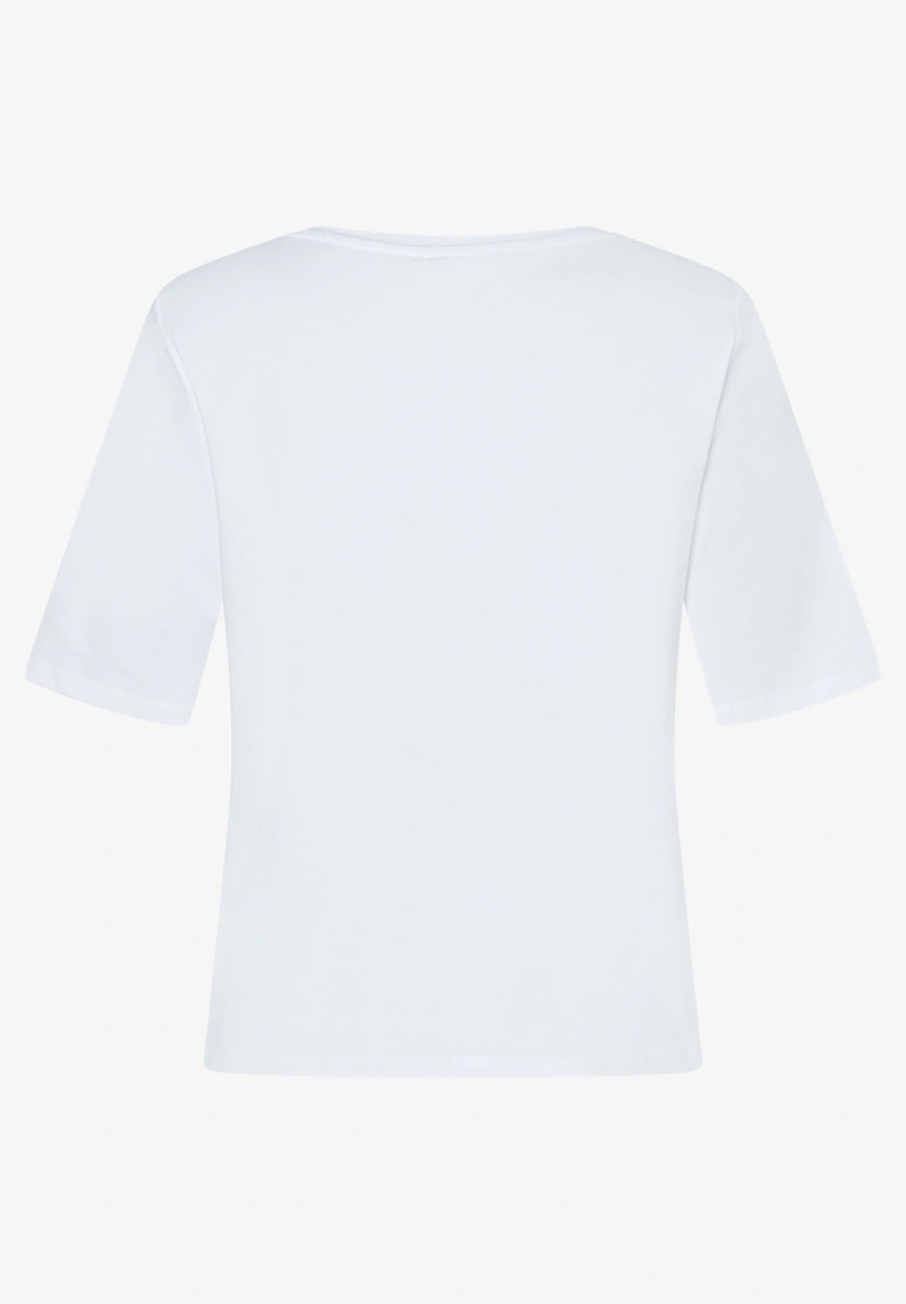 Tämä valkoinen t-paita hauskalla printillä tuo rennon tunnelman asulle. Sopii hyvin niin kesään kuin kevääseenkin. Printissä on pieniä timantteja.