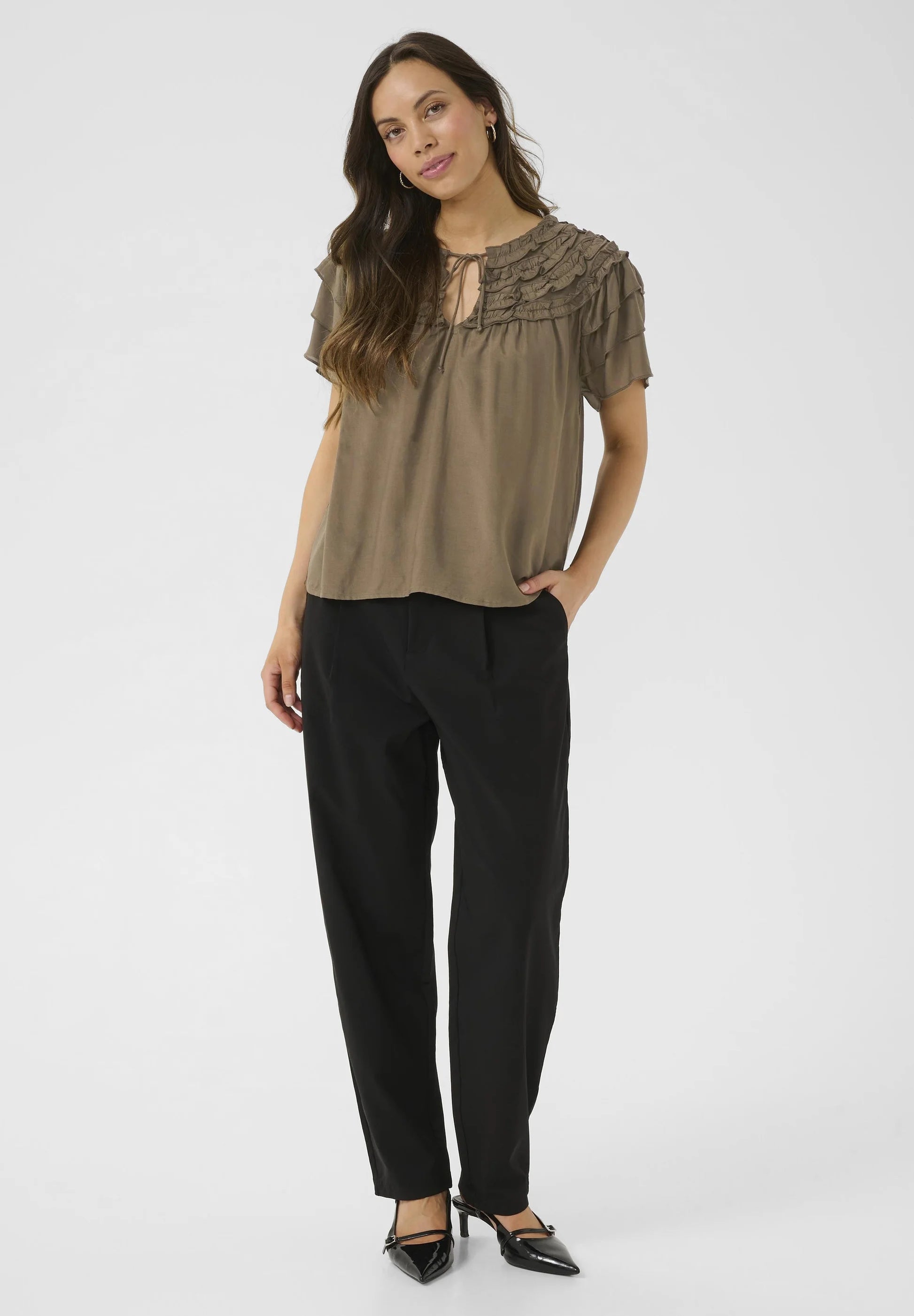 Kevyt ja naisellinen pusero, jossa on kauniit yksityiskohdat. Pusero on helppo yhdistää farkkuihin, hameeseen tai siisteihin housuihin.