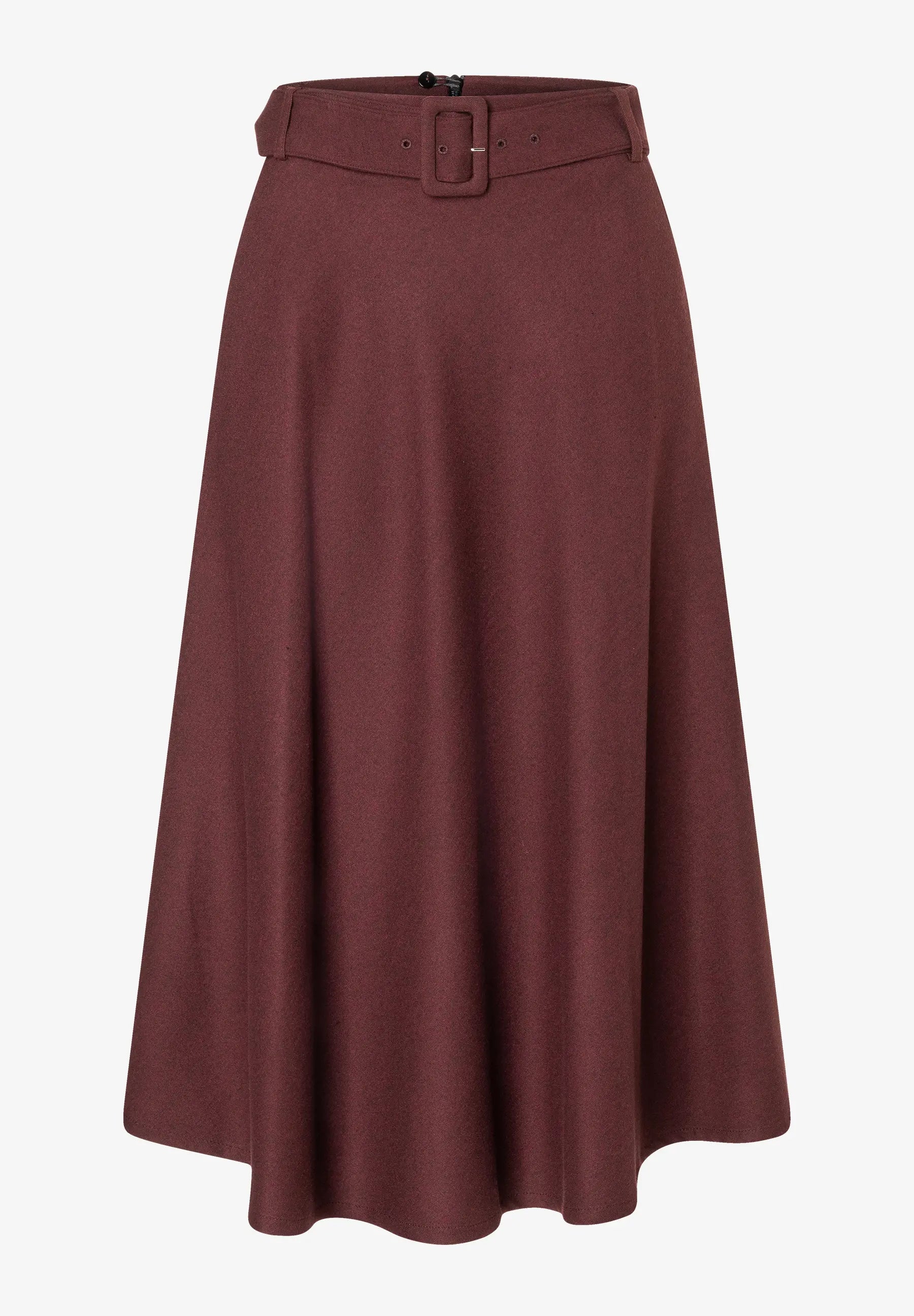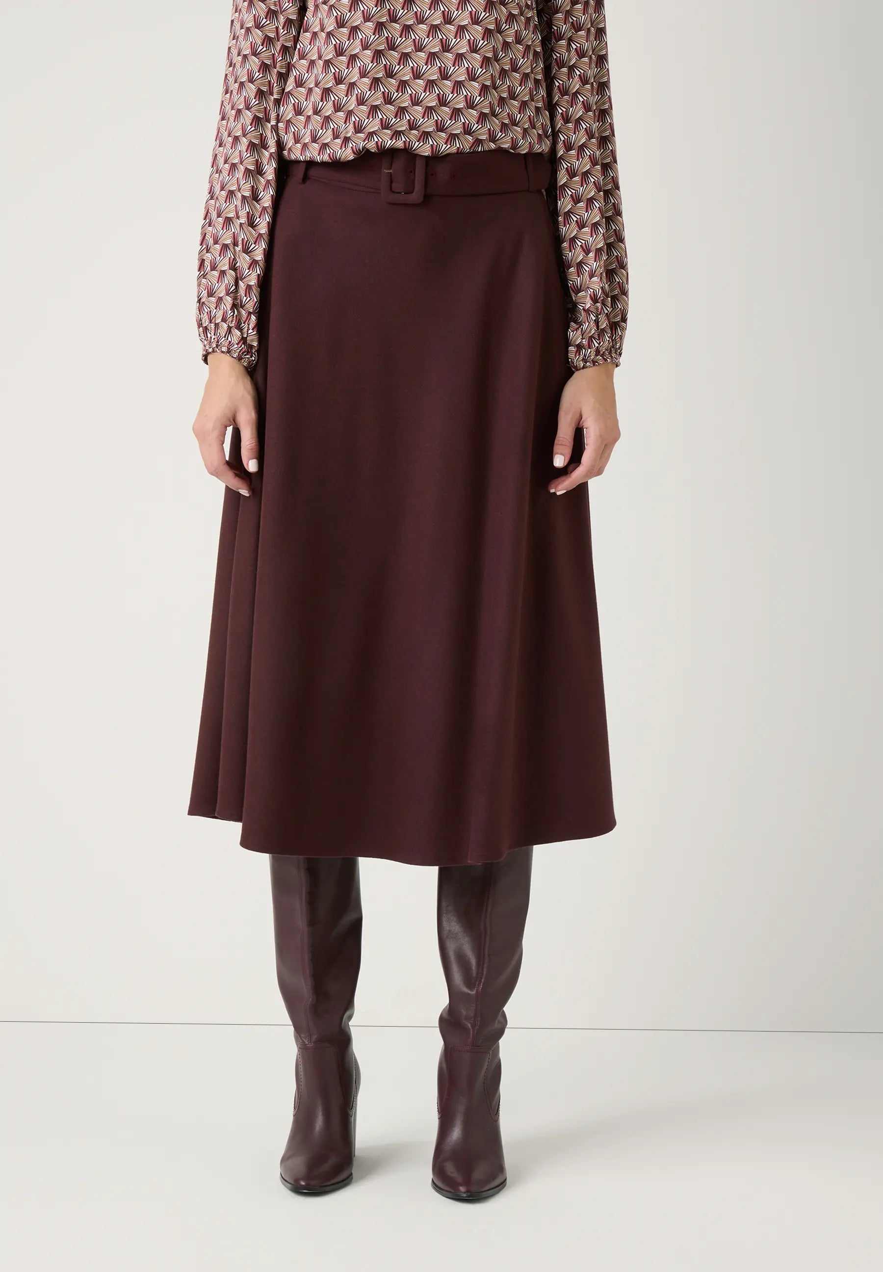Ihanan syksyinen pitkä kellohame. Hame on väriltään tumman viininpunainen. Hameeseen kuuluu vyö ja taskut.
