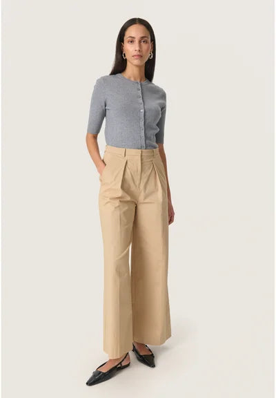 Malo housu on leveä ja korkeavyötäröinen. Housussa on piilovetoketju ja etuosassa laskokset. Malo housuun on saatavilla myös Malo takki millä voit täydentää asukokonaisuutesi!