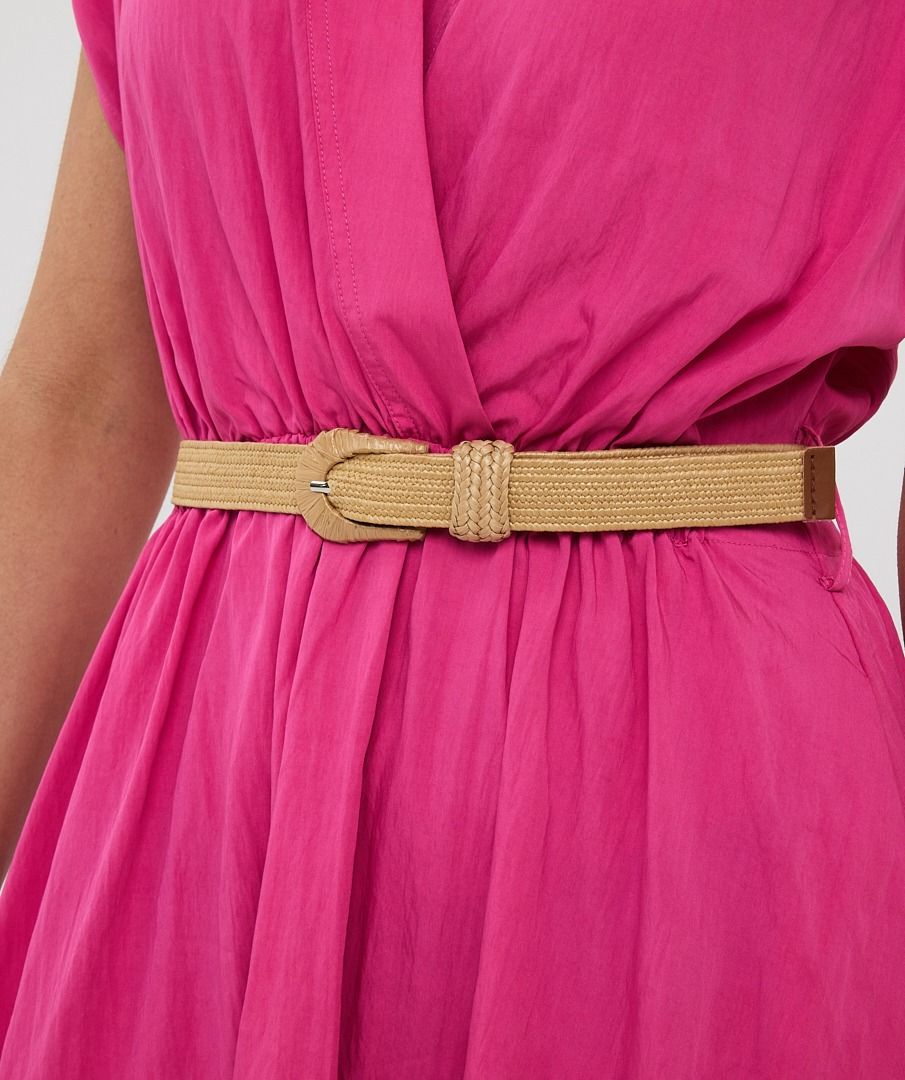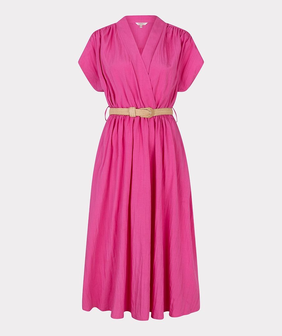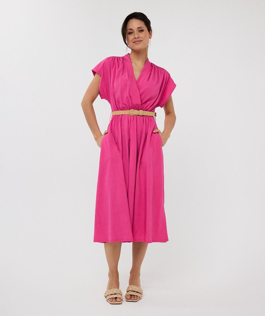 Esqualon kaunis taskullinen mekko, jossa joustava vyö mukana. Mekon etuosa menee hieman ristiin ja pieni hiha peittää vähän käsivartta. Mekko ylettyy hieman polven alle.