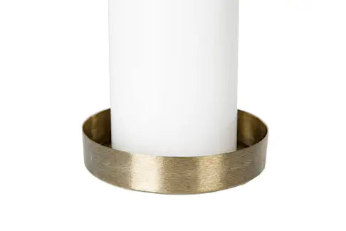 Harjattua messinkiä kaunis kynttilänalunen. Pohjassa pehmusteet. Mukana ei tule kynttilää.