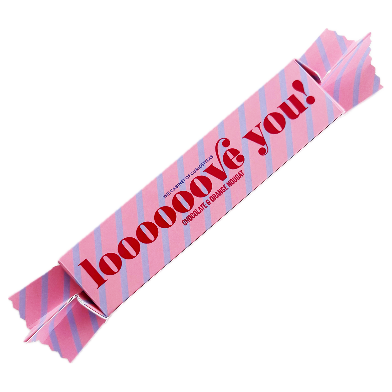 Loooove You Nougat - Tämän extrapitkän “RAAAAAKASTAN SINUA” -kääreen sisältä löydät käsintehdyn nougat-patukan, jossa on suklaa–appelsiinin maku. Siinäpä vasta extrapitkää nautintoa!