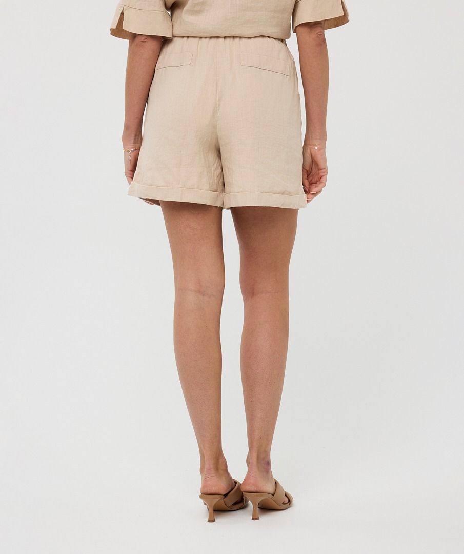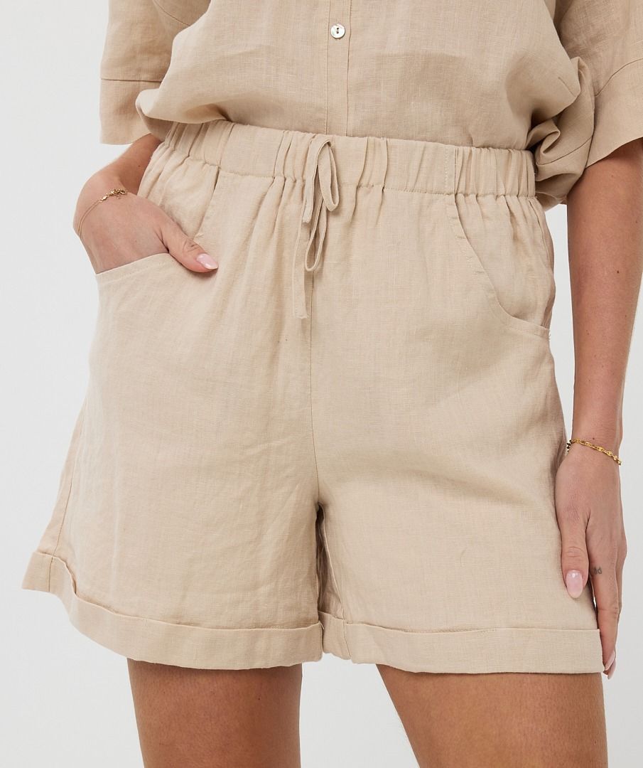 Esqualon vuorelliset pellava shortsit missä kuminauhavyötärö ja koriste nauhat.