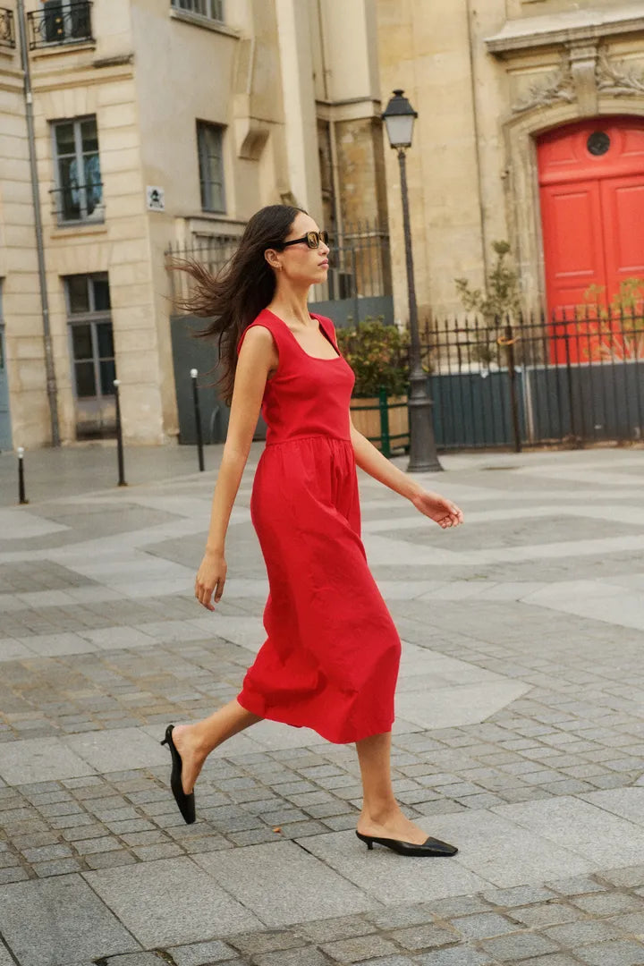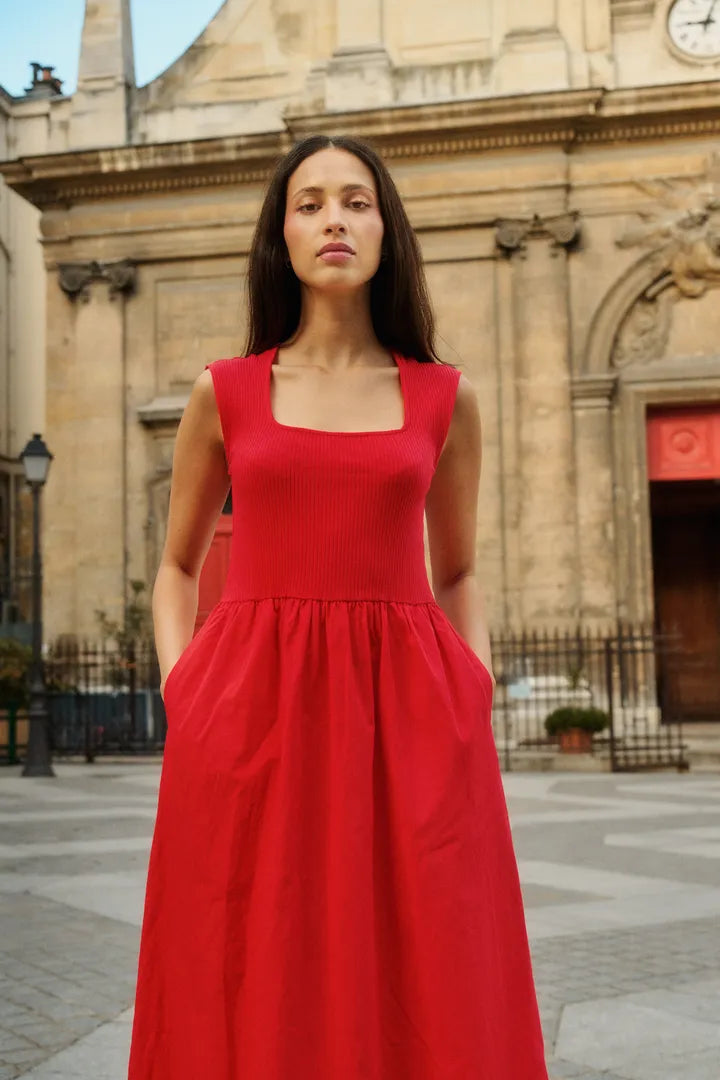 Kaunis mekko kesän juhliin, sekä arkeen. Mekossa on kaunis neliömäinen pääntie ja kauniisti laskeutuva hame.