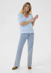 Poppi-neule on täydellinen valinta, kun haluat yhdistää mukavuuden ja tyylin. Sen puolipitkät hihat tekevät siitä juuri sopivan vaatekappaleen kevääseen, sekä kesään.