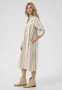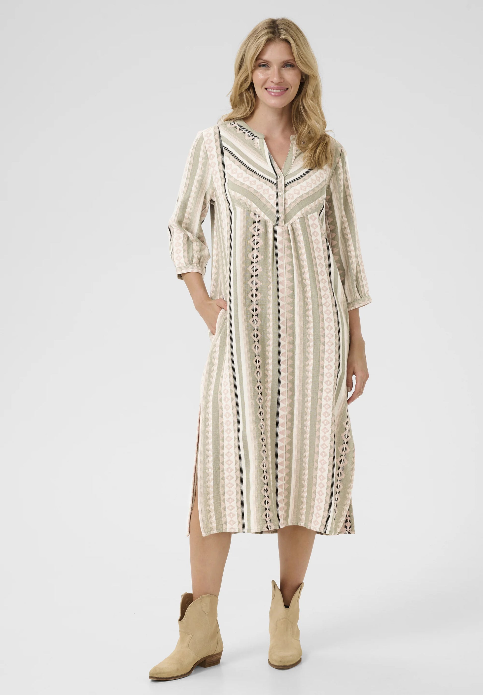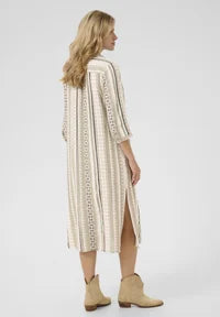 Tämä kaftaani on kauniisti kudottu puuvillasta. Edessä ja hihoissa on napit. Pituus säärimittainen ja sivuilla halkiot. Boheemilla lookilla voit pukea kaftaanin alle myös housut.