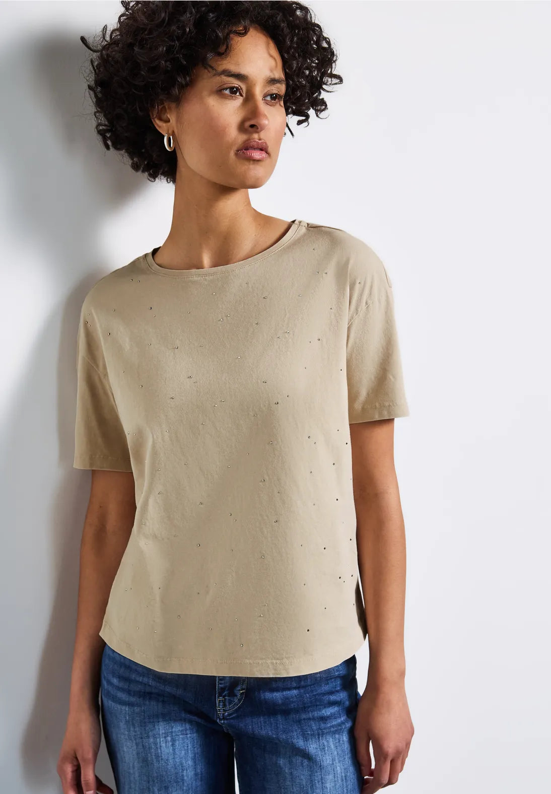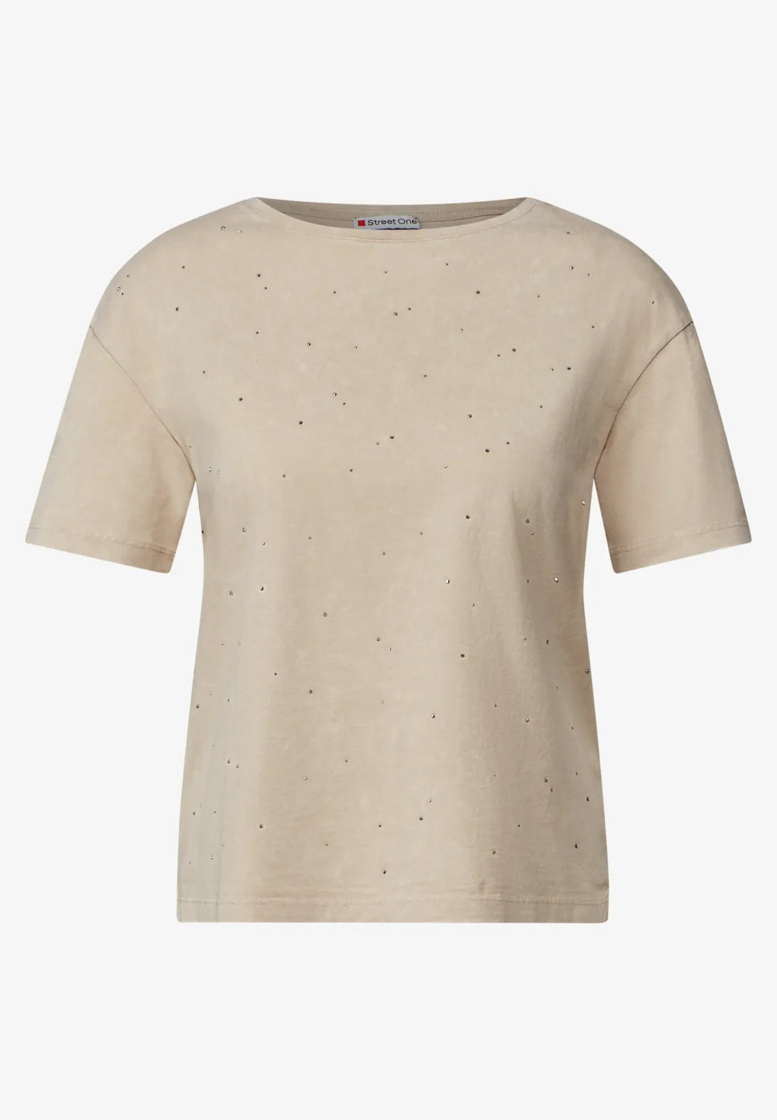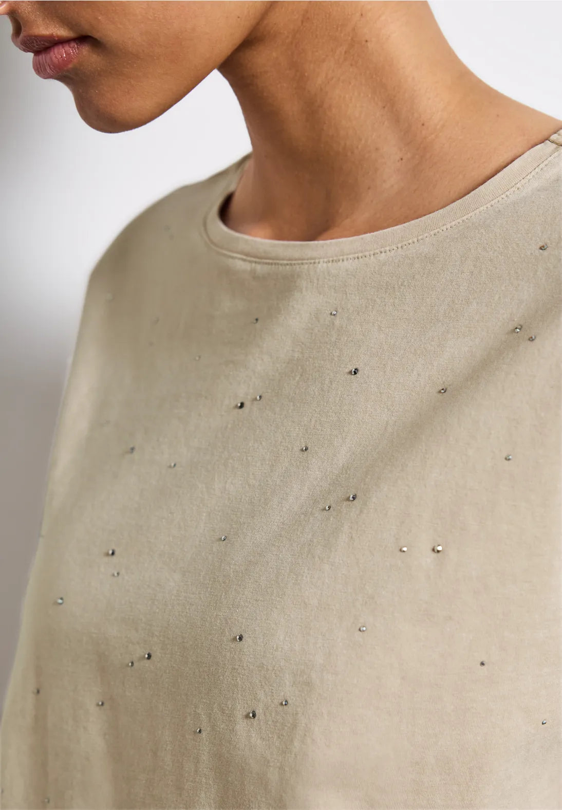 Puuvillainen T-paita, johon strassit tuovat ripauksen luksusta.