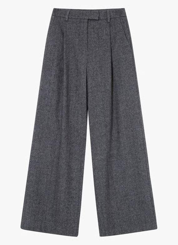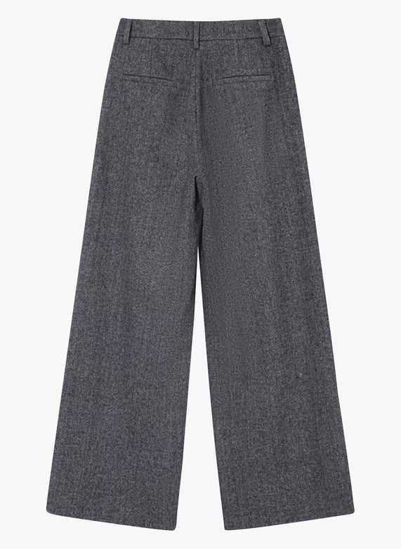 Nämä harmaat villakangashousut koostuvat lähempää katsottuna mustavalkoisesta kalanruotokuviosta. Housuissa on suorat lahkeet ja korkea vyötärö. Housujen sulkumekanismina on vetoketju ja koukku, ja niissä on tilavat taskut sivuilla. Nämä housut ovat ihanat syksyyn, ja pitävät villasekoitteen ansiosta hyvin lämpimänä.