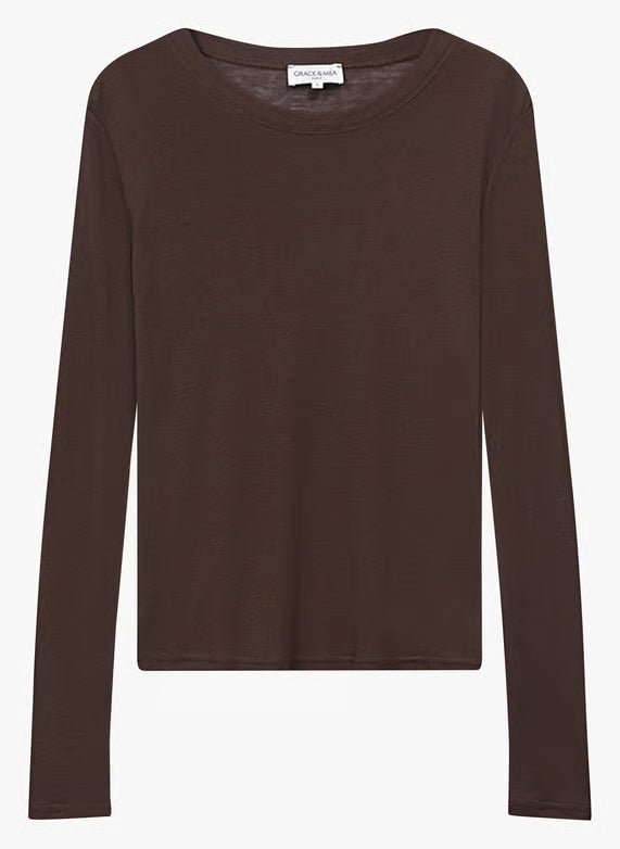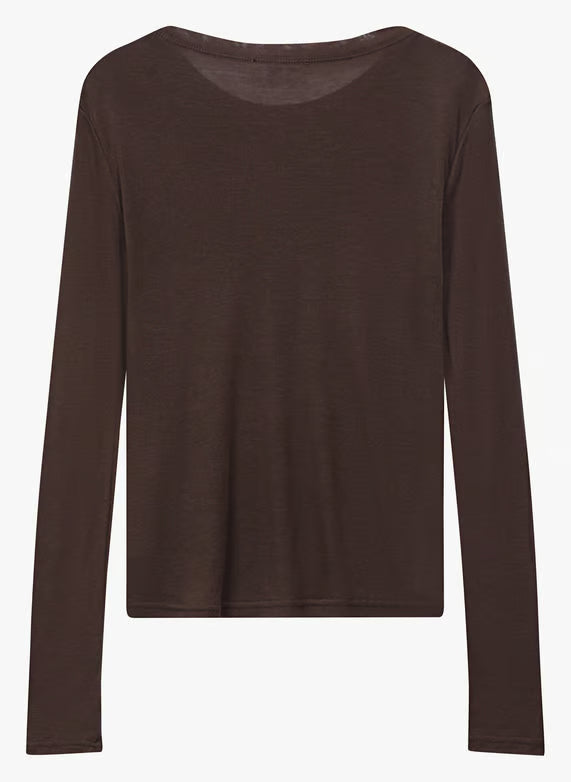 Tämä ruskea pitkähihainen paita on ohut ja läpikuultava, mutta pitää silti lämpimänä, sillä se on villasekoitetta. Se on täydellinen palanen talven kerrospukeutumista varten. Paita on joustavaa materiaalia, joten istuu mukavasti kaikille.