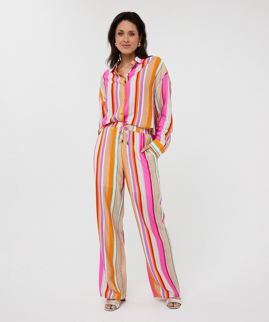 Väriä kesään ihanilla Esqualon raitahousuilla. Housuissa shortsimittainen vuori, takut ja kuminauhavyötärö.