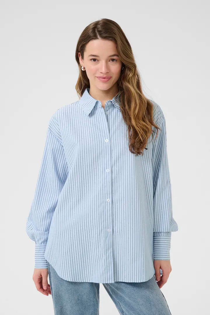 Kaunis, oversized mallia oleva raidallinen kauluspaita timanteilla. Paita sopii hyvin rennosti arkeen ja siistimpäänkin tilaisuuteen.