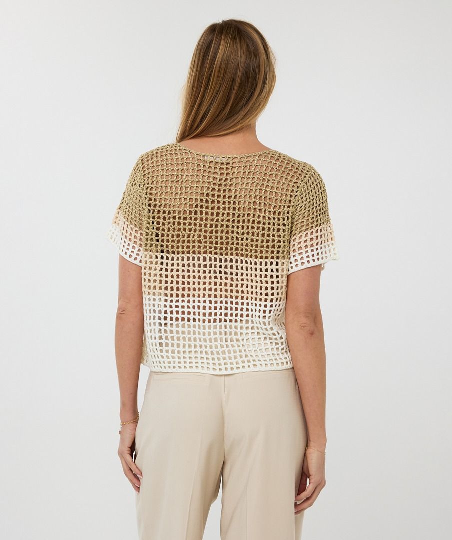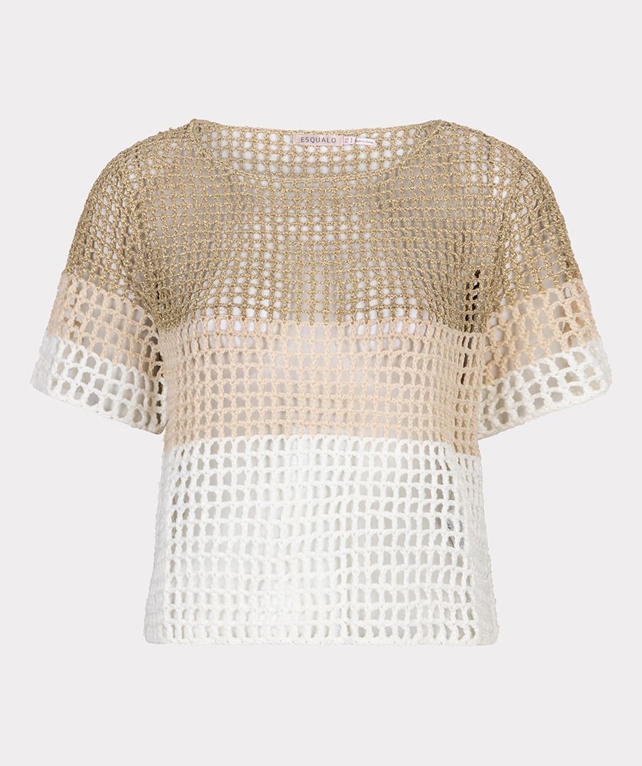 Tämä kaunis ja kevyt Equalon virkattu neule sopii käytettäväksi esim. bikinin yläosan kanssa tai topin päälle. Esqualolta saatavilla myös neuleen alle kultainen trikootoppi .